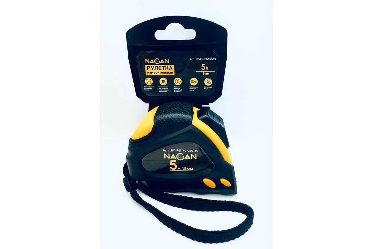 Рулетка NAGAN 5м х19мм, магнит, нейлоновое полотно